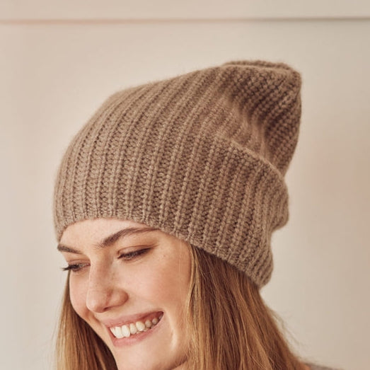 Plain Knitted Cashmere Hat Organic Brown