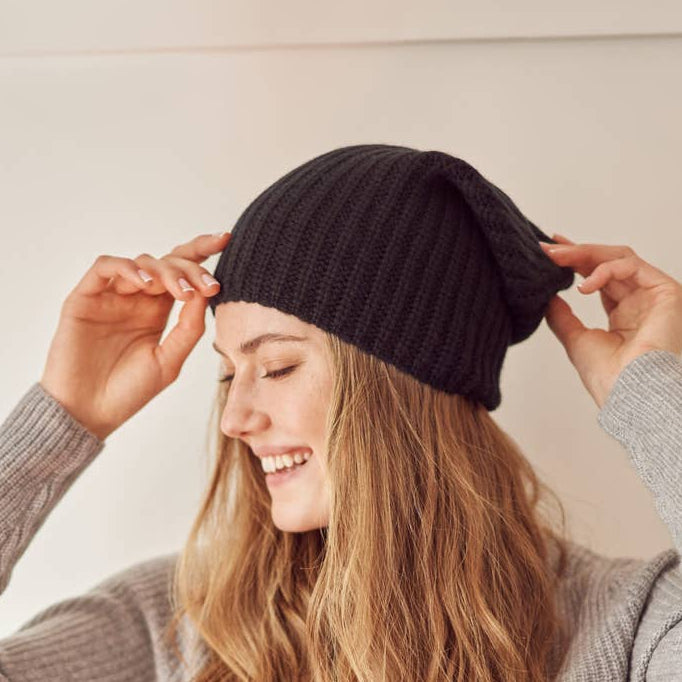 Plain Knitted Cashmere Hat Black