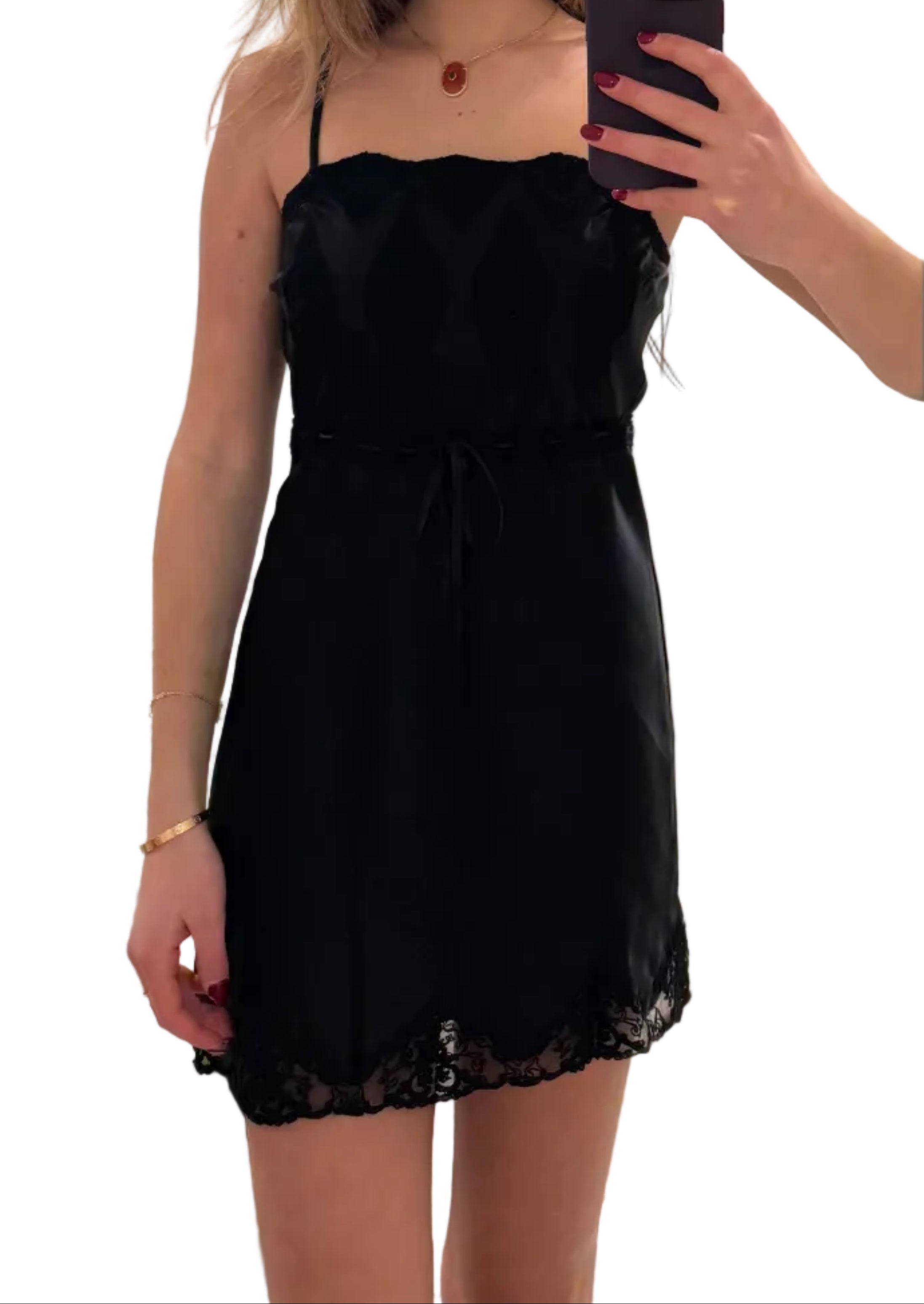 Sanna Lace Detailed Mini Slip Dress Black