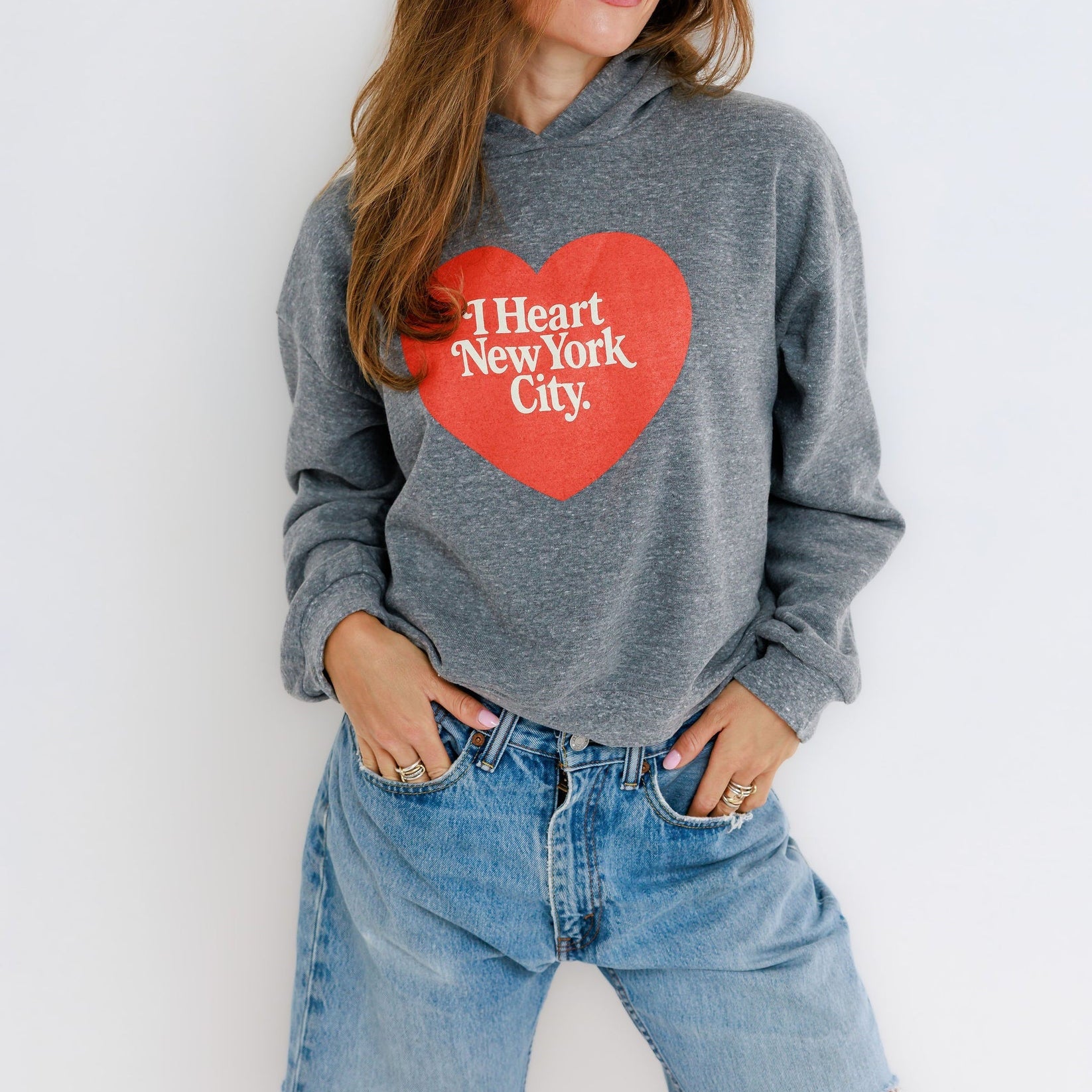 NYC Heart Hoodie Heather Grey