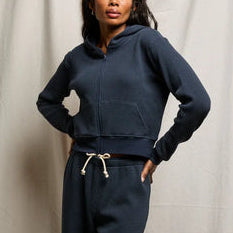 Inez Waffle Zip Hoodie Navy