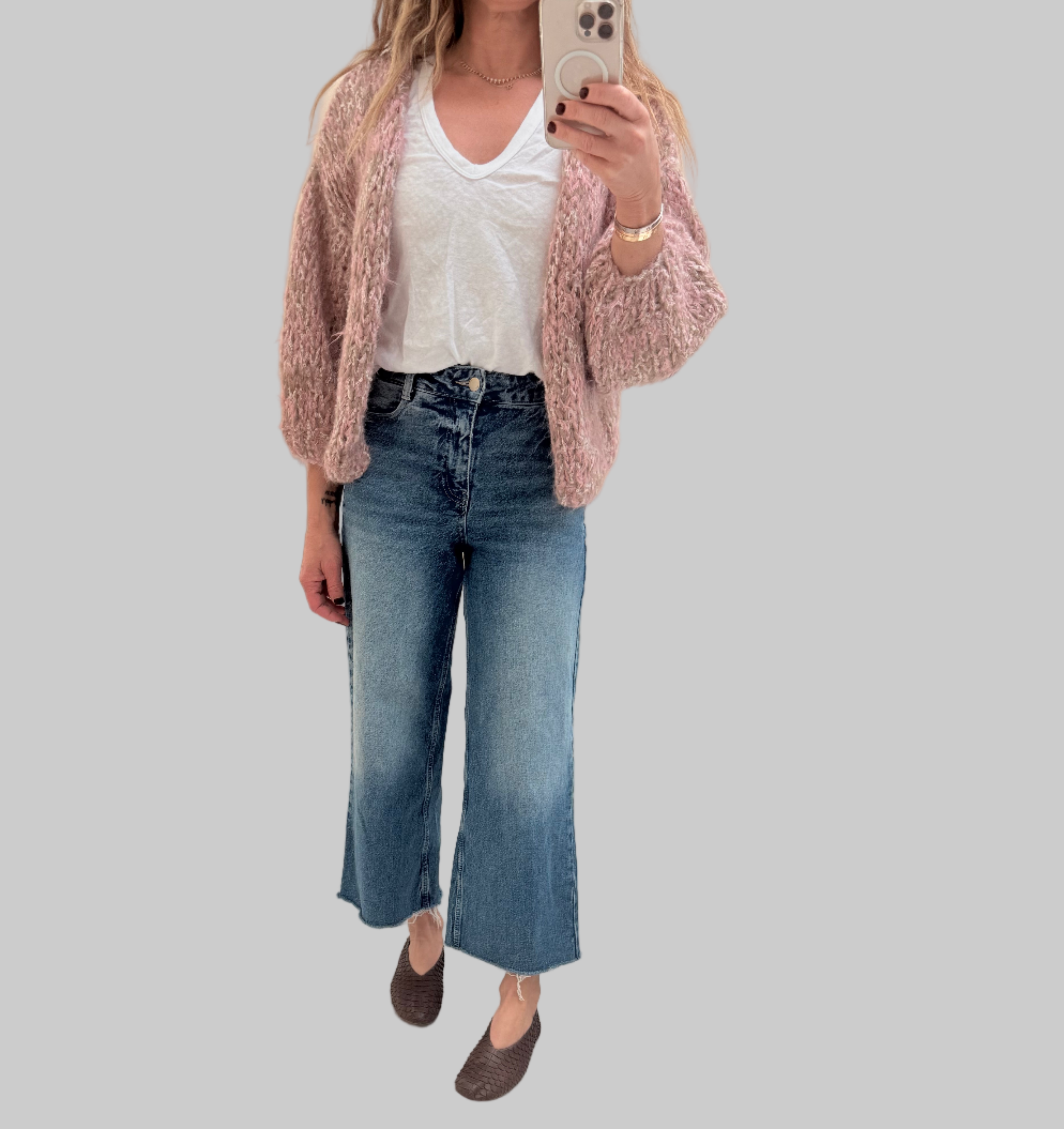 Fleecy Alpaca Ombre Bomber Cardi Red + Grey Gradient