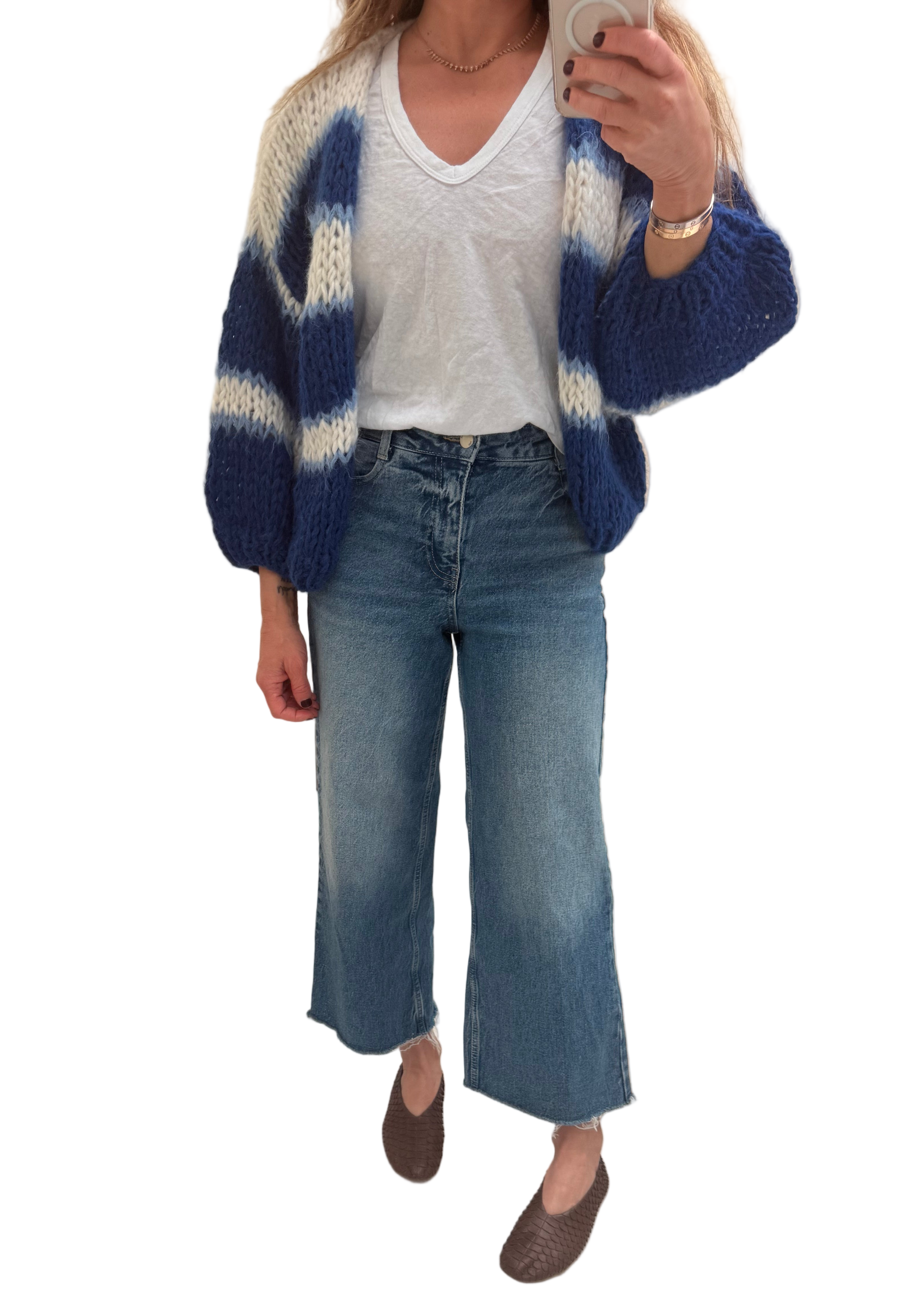 Alpaca Tweed Bomber Cardigan Electric Blue