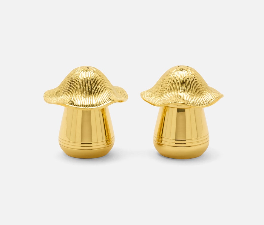 Heidi Brass / Polished Gold Mushroom Salt and Pepper Shakers
