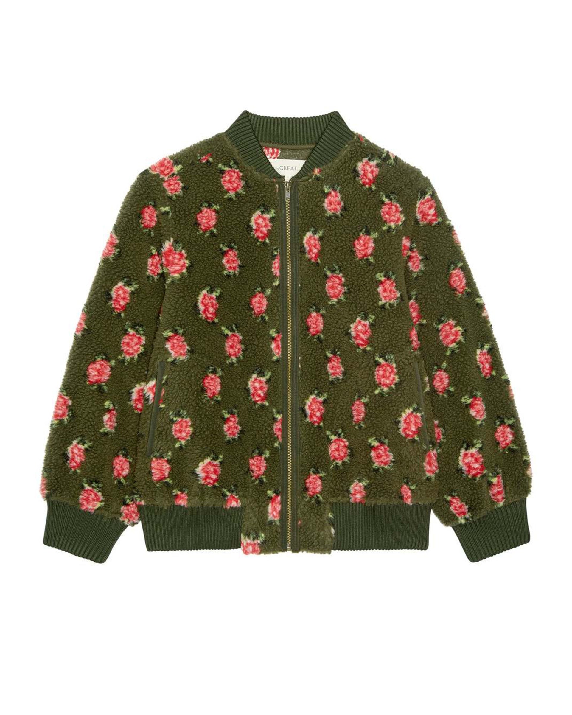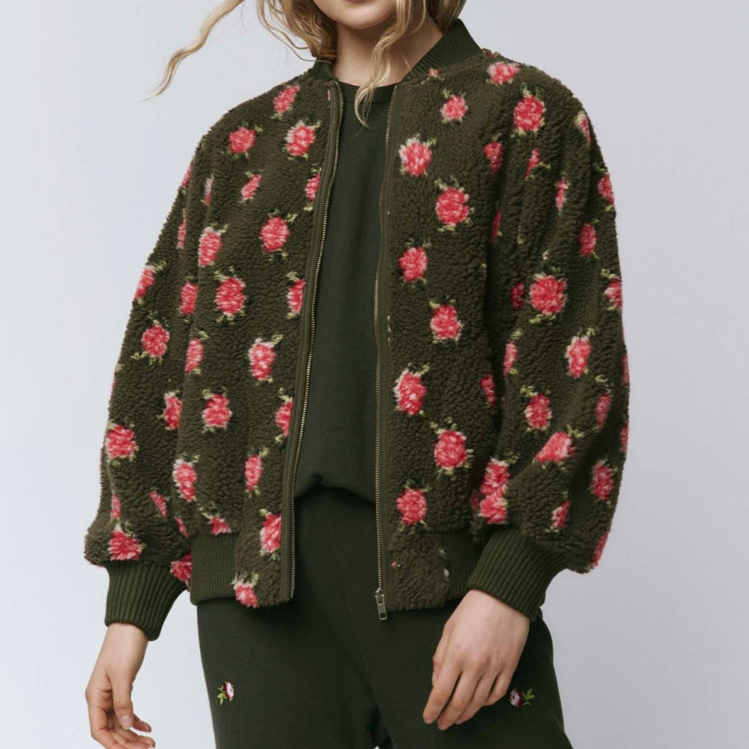 The Zip Front Plush Bomber Woodland Green