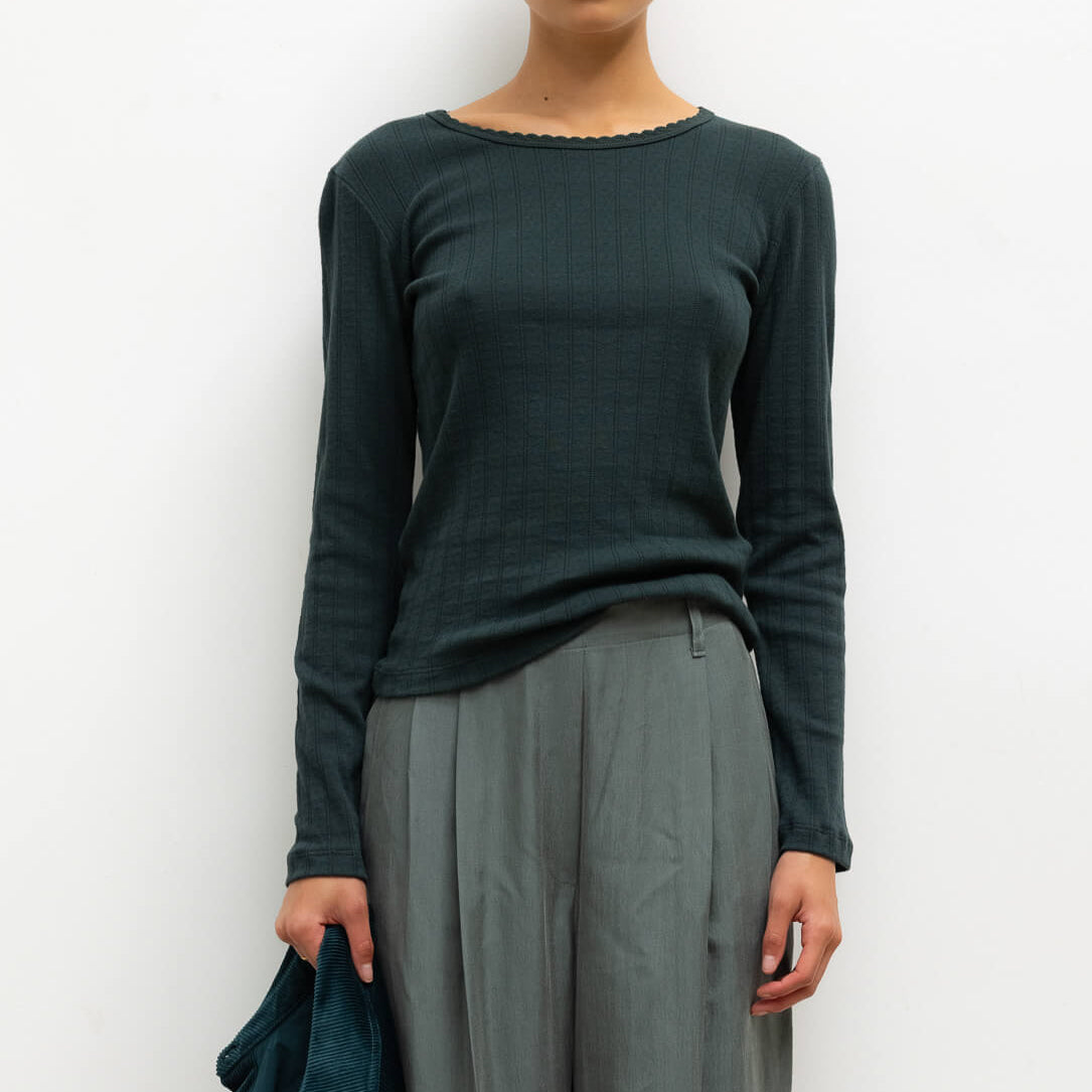Pointelle Slim Fit L/SLV Forest