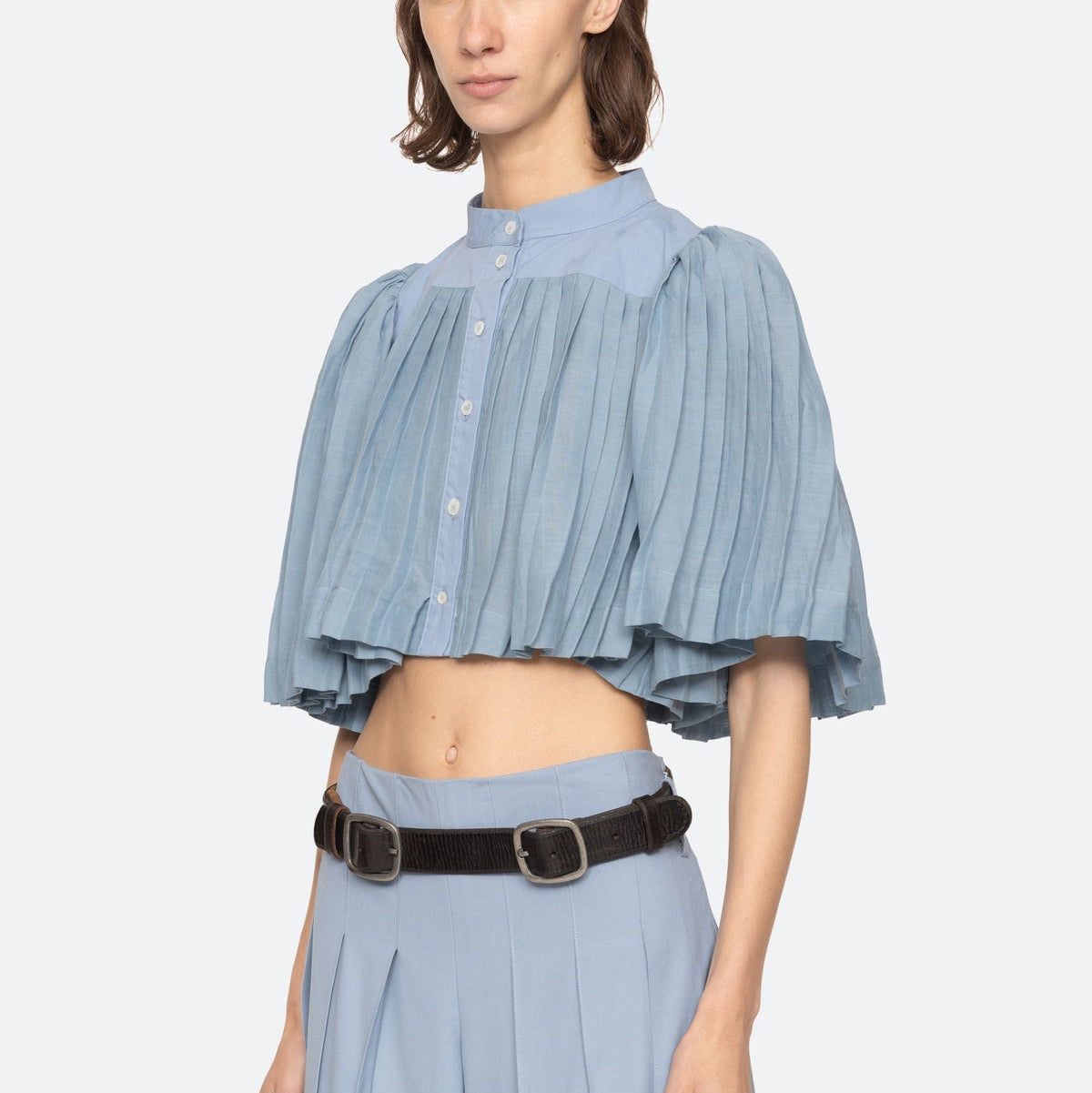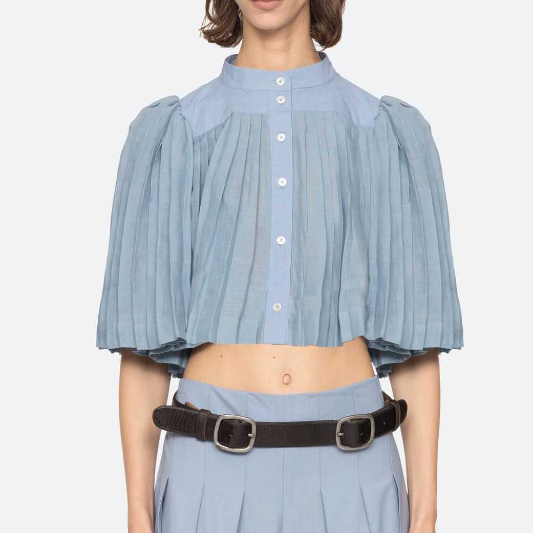 Solene Pleated S/Slv Top Blue