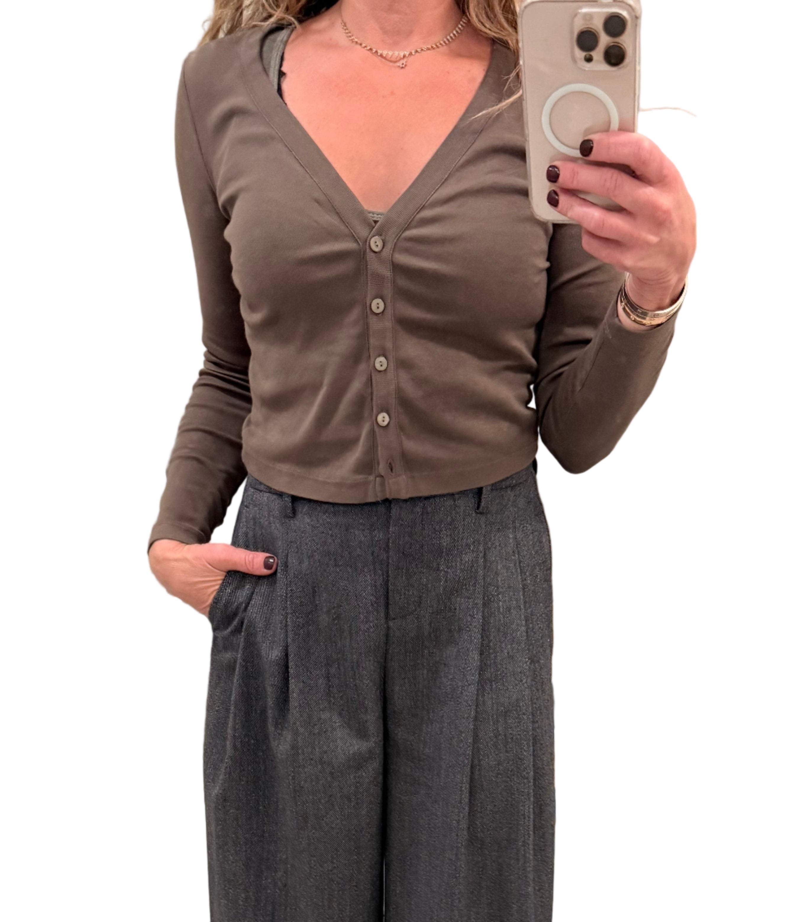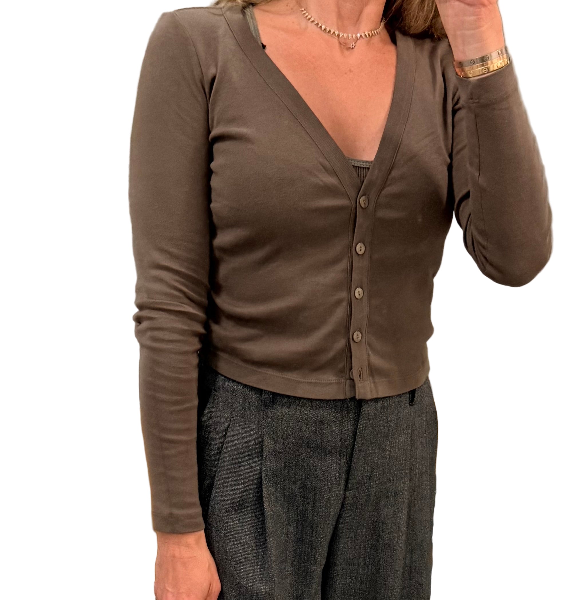 Supima Cotton New Classic V-Neck Cardigan Mushroom